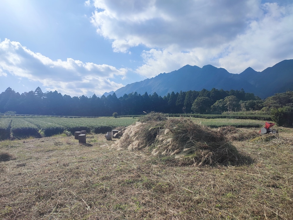 冬の畑の作業は草刈と、刈ったすすきをカッターで細かくカットして畝間に敷くという地道な作業をしておりました。