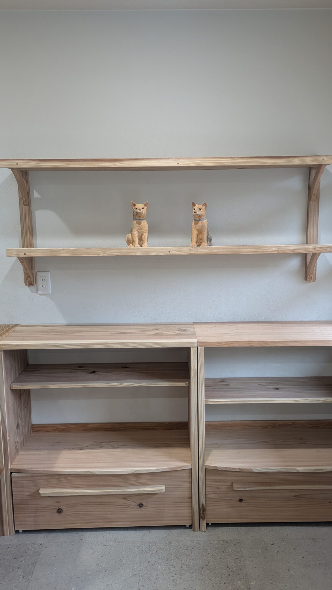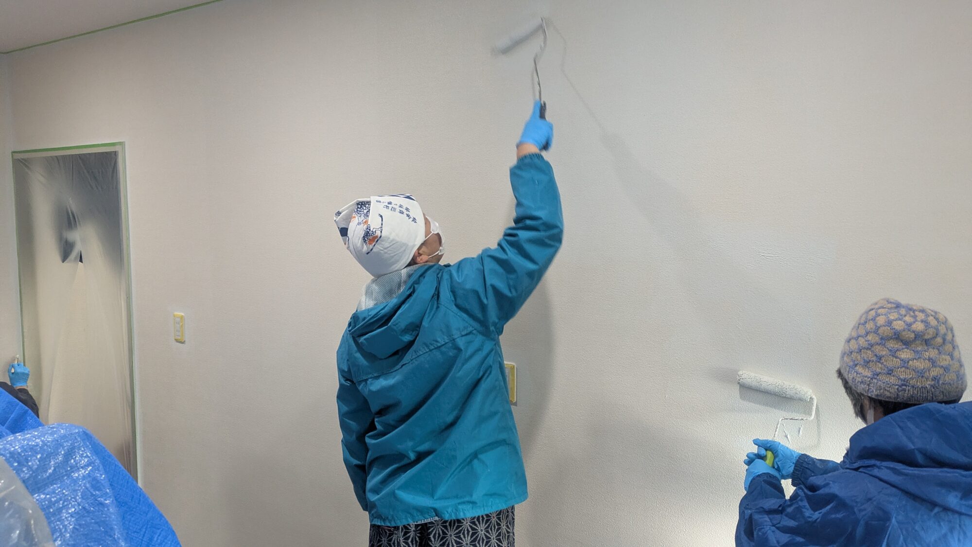 店舗の壁はスタッフによる漆喰DIY。白クロス張りから漆喰へ、白から白なので見た目変わりませんが、